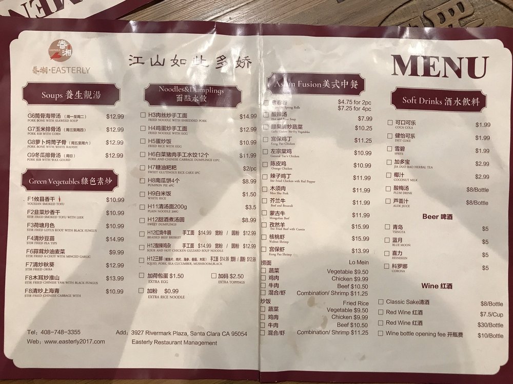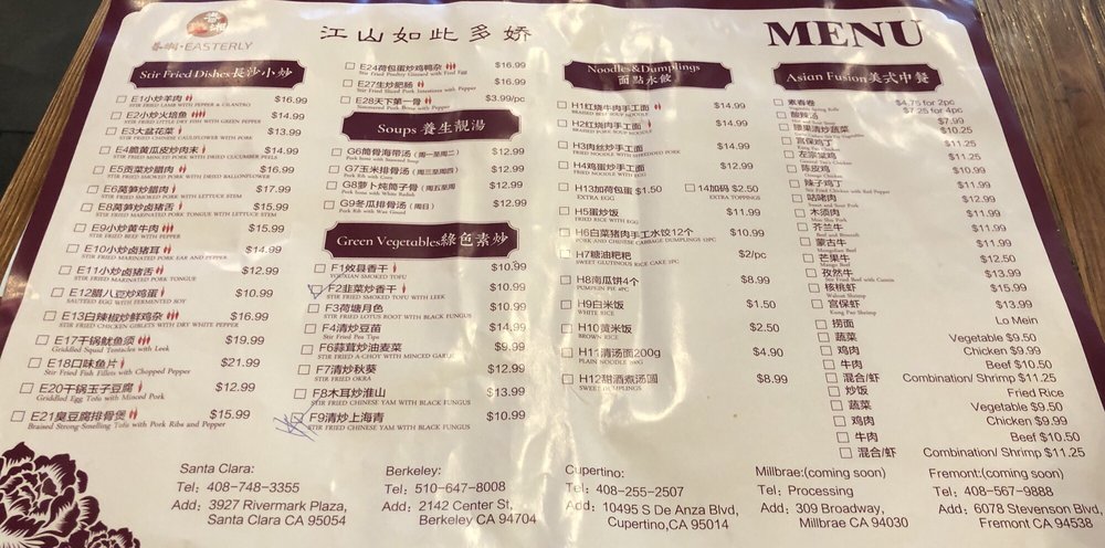 Easterly Berkeley Menu